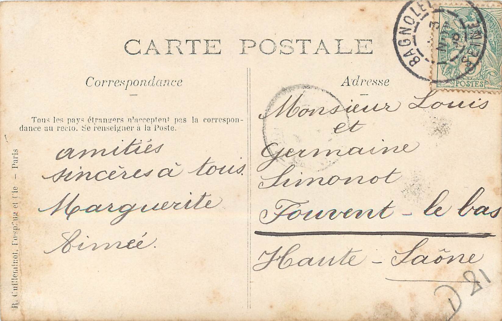 93 BAGNOLET. La rue Sadi Carnot vers 191020,00 €