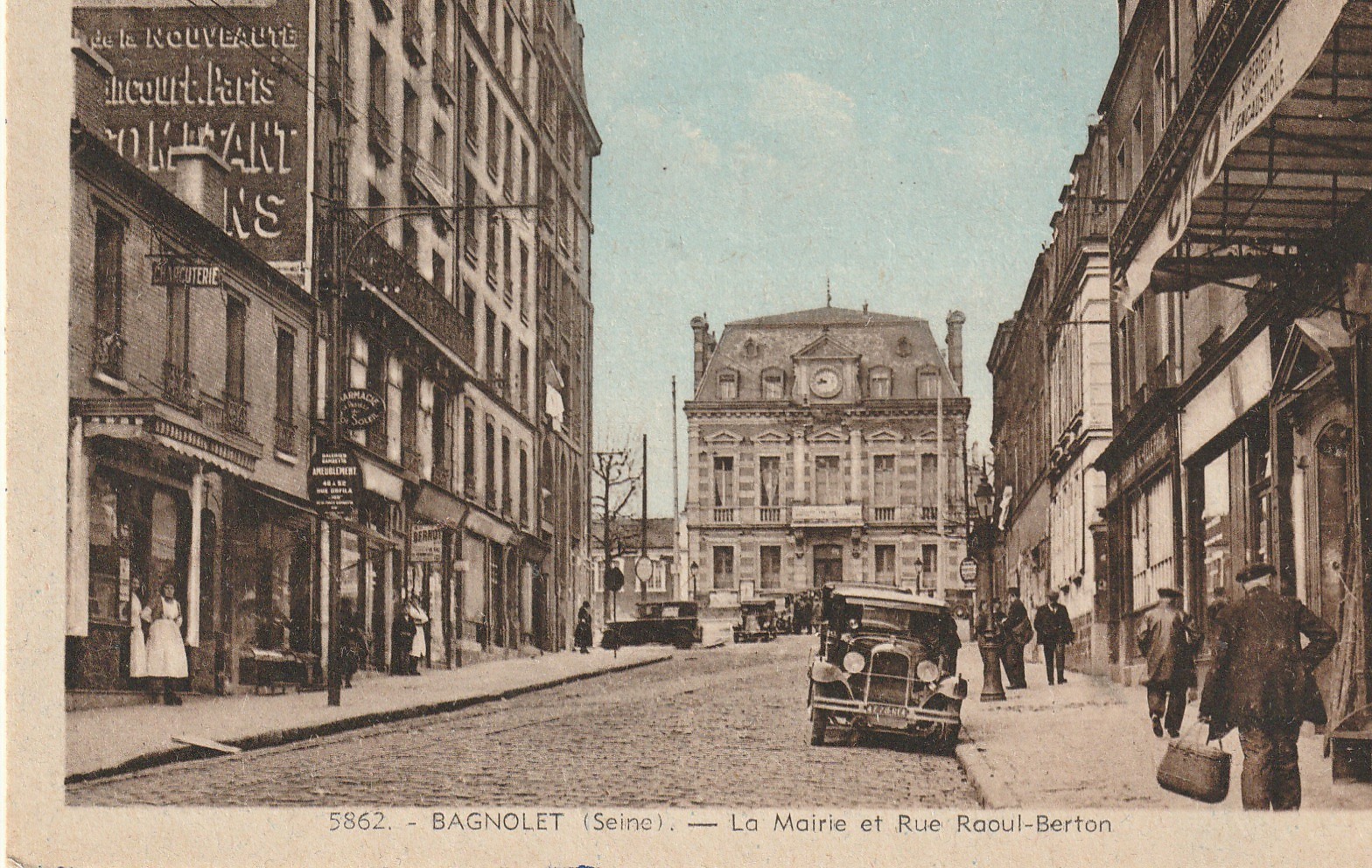 93 BAGNOLET. Voiture ancienne devant l'ancienne Poste rue Raoul Berton, ex rue du Progrès...