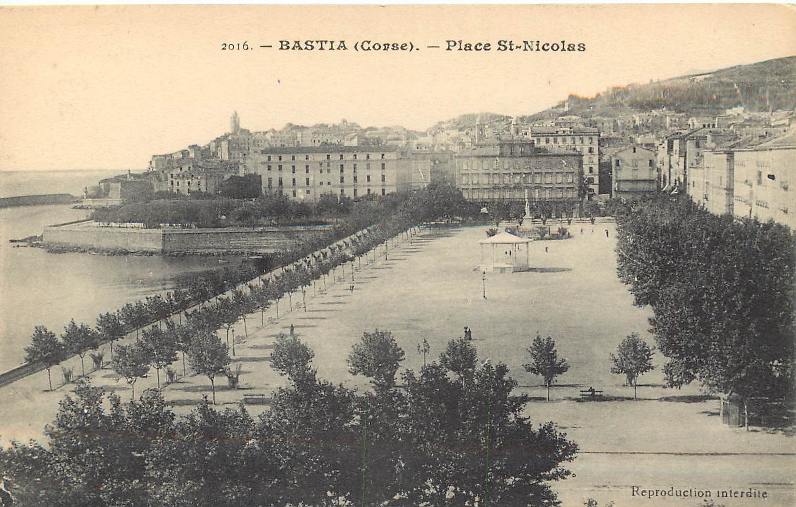 2 cpa BASTIA. Statue Napoléon I° et Place Saint-Nicolas