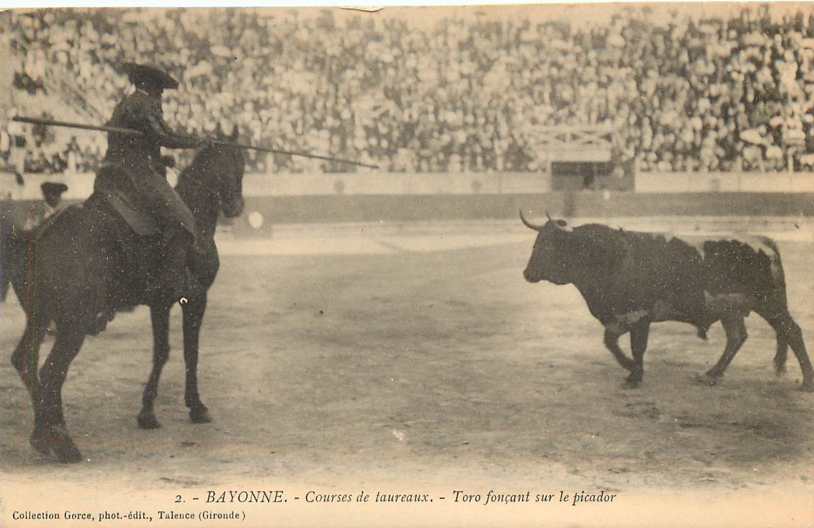 64 BAYONNE. Corrida Courses de Taureaux. Toro fonçant sur le picador