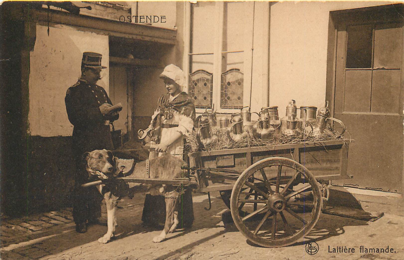 OSTENDE. Laitière flamande et son attelage à chien et un gendarme