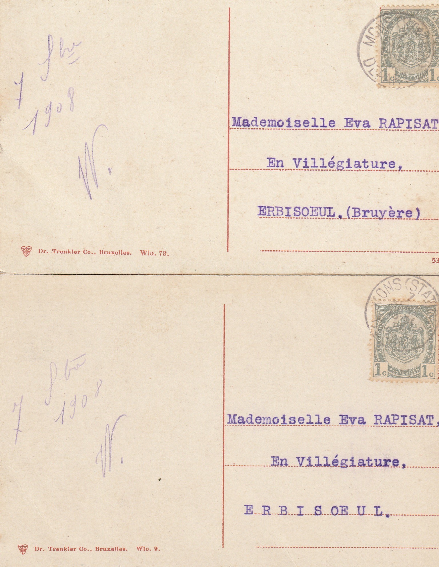 2 x cpa WATERLOO. Piédestal du Lion et Monument Français 1908