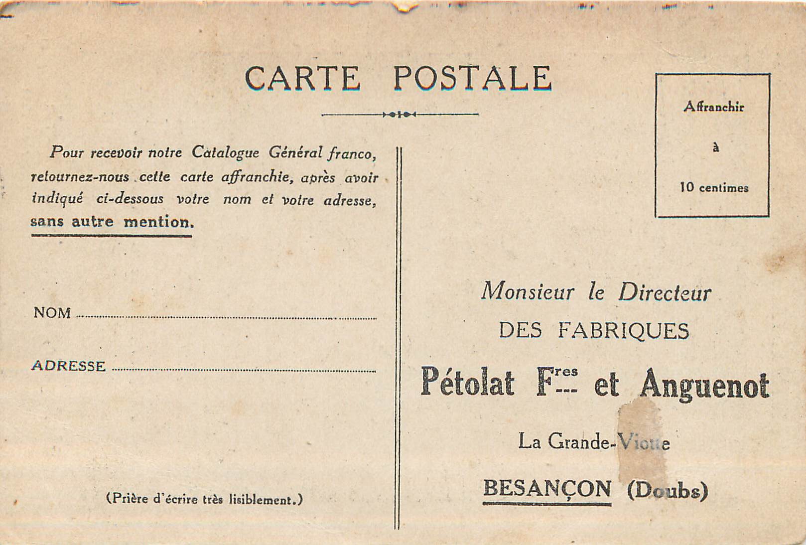 25 BESANCON. Fabriques Pétolat frères et Anguenot. Publicité Horlogerie, Bijouterie, Orfévrerie