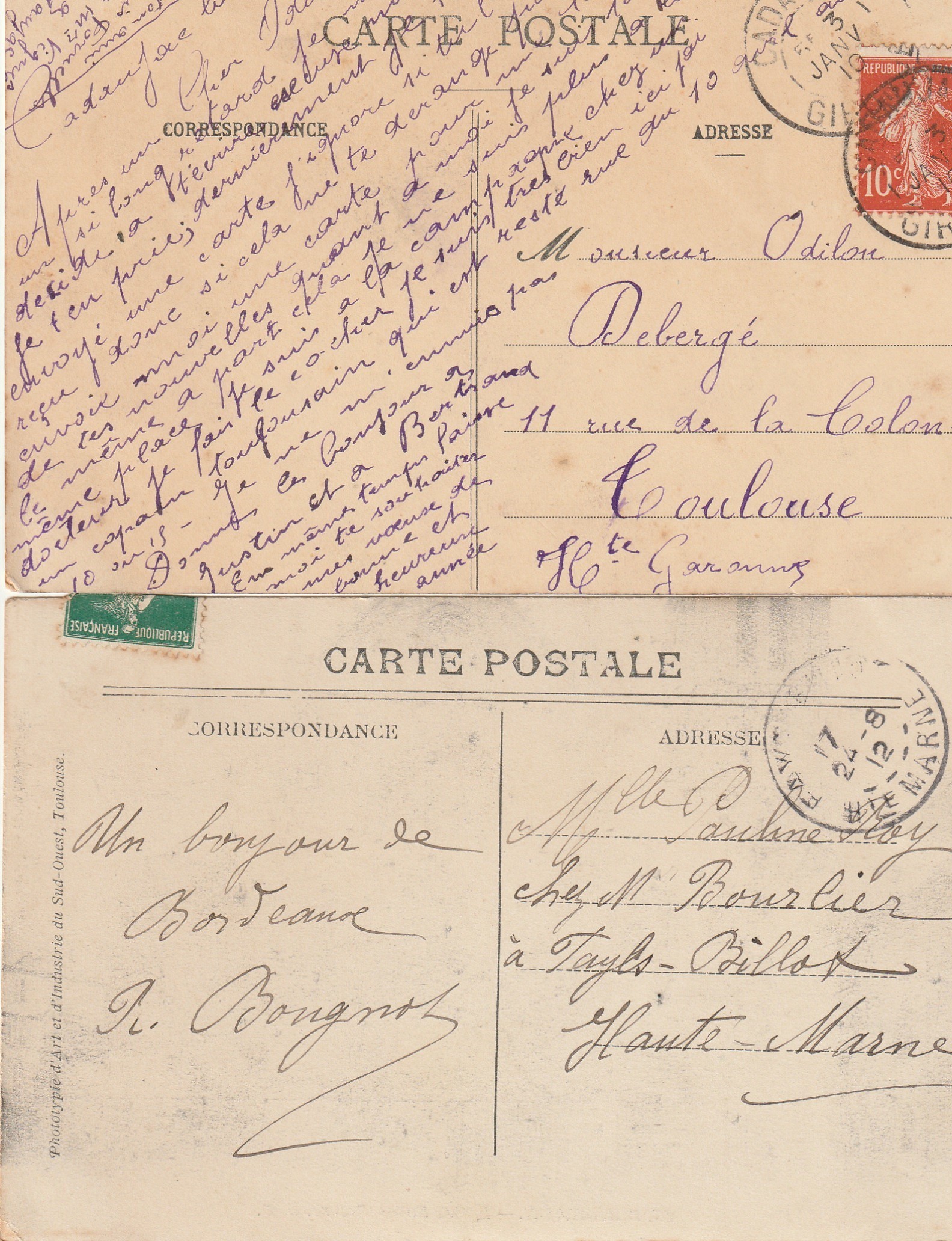 2 x cpa 33 BORDEAUX. Allées de Tourny et Eglise Saint-Pierre 1910-12