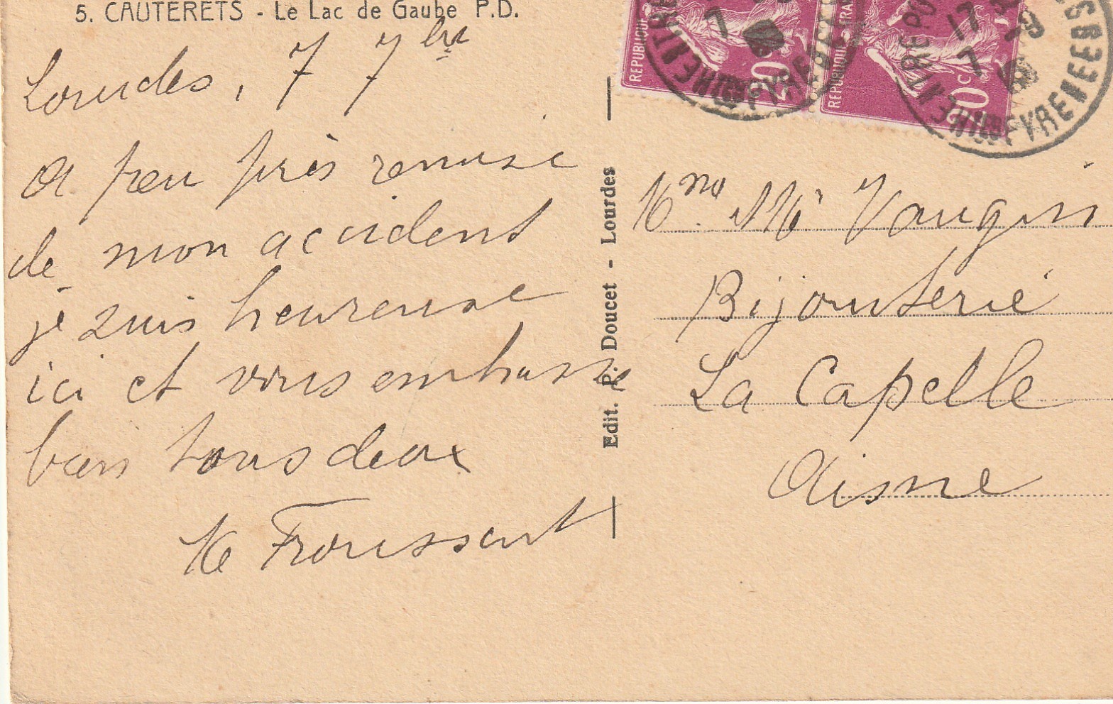 carte postale ancienne 65 CAUTERETS. Le Lac de Gaube 1917 animé9,90 €