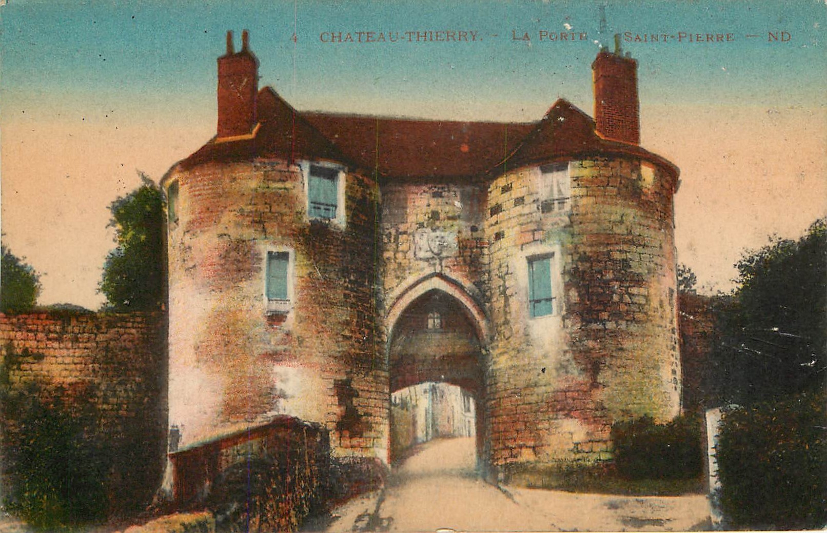 8 cpa 02 CHATEAU-THIERRY. Promenade Tour du Roy, Ru Bois Pierre, Eglise St-Crépin, rue St-Pierre Porte St-Jean
