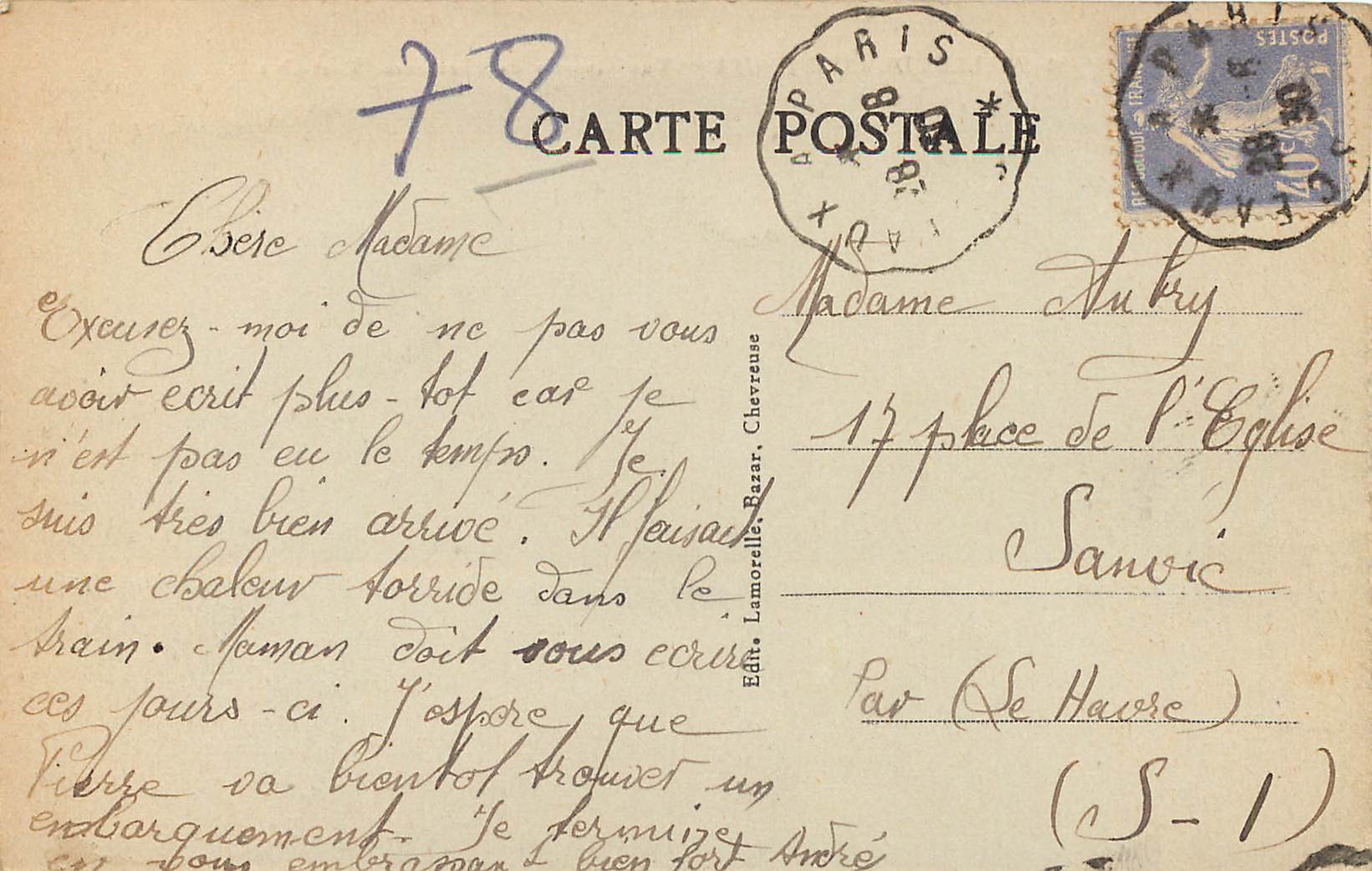 Ecrite et timbréeDestinataire :