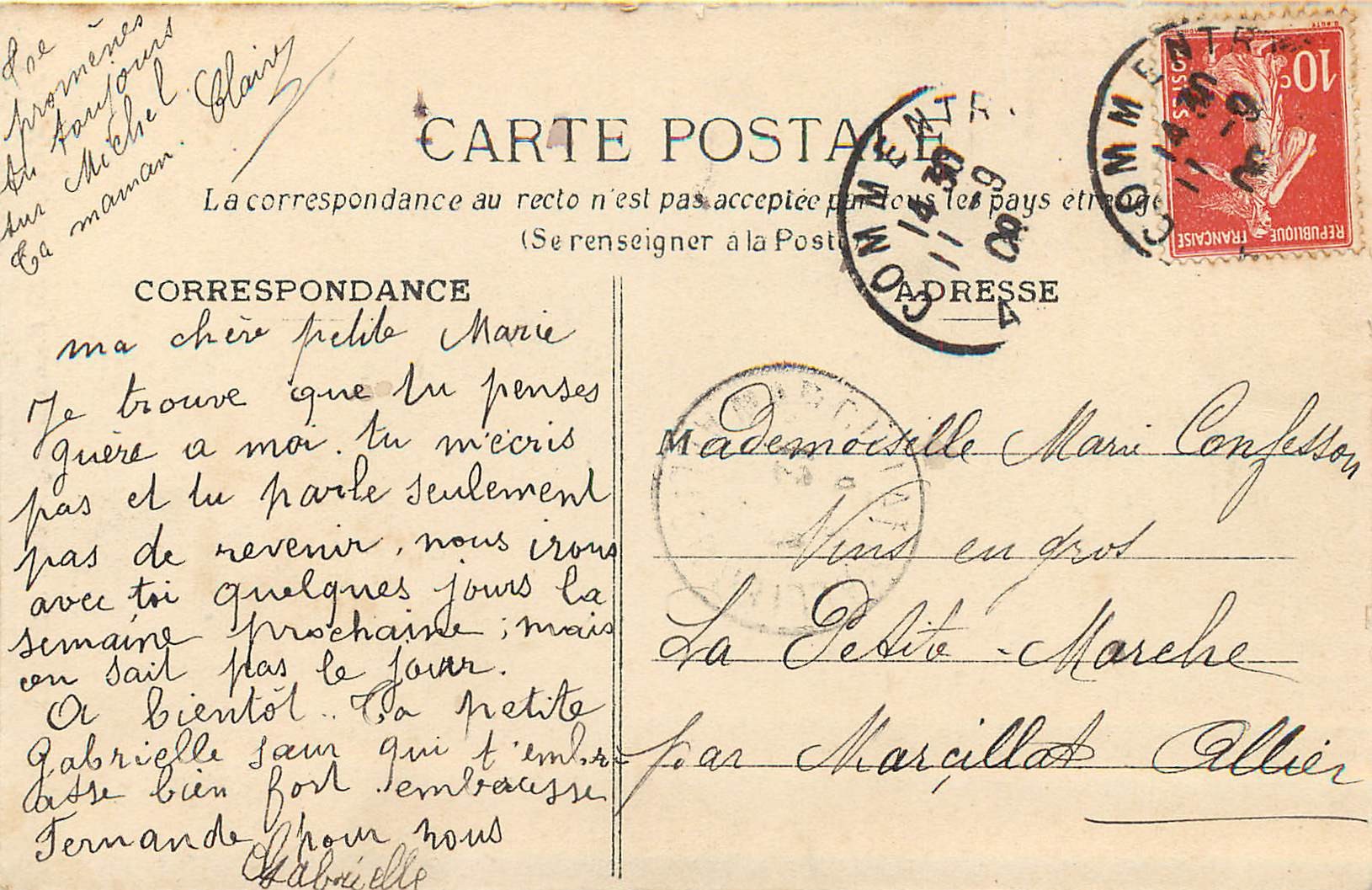 carte postale ancienne 03 COMMENTRY. Fontaine Place Hôtel de Ville 1907. Roulotte et Café de l'Union10,00 €