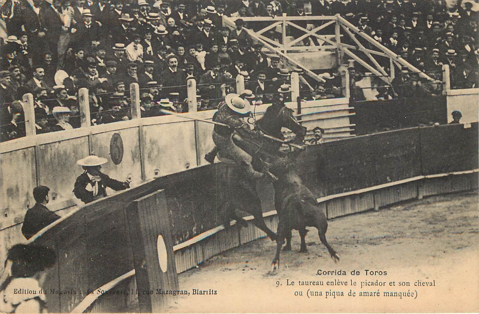 CORRIDA DE TOROS. Taureaux arène le Taureau enlève le picador de son cheval