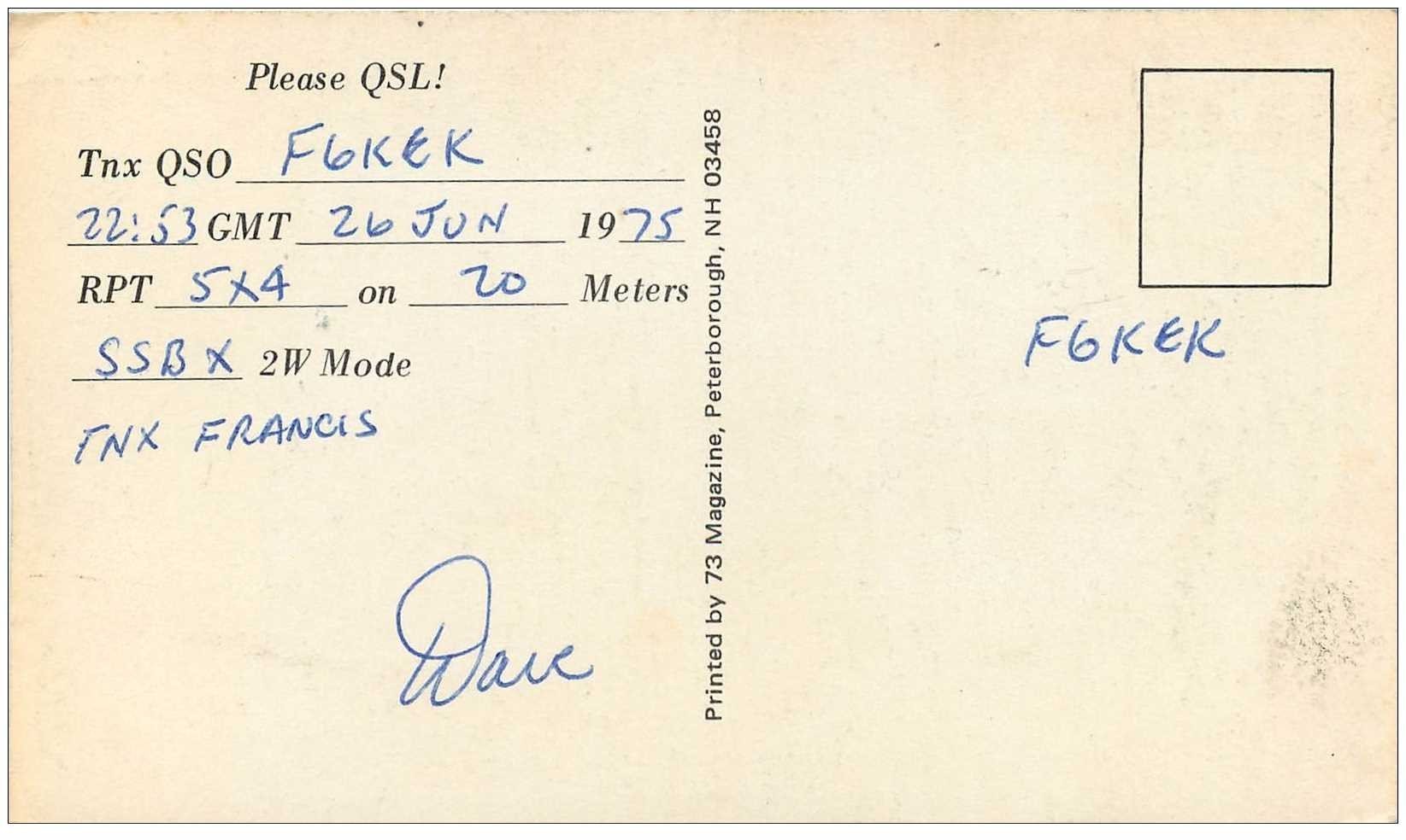 carte postale ancienne CARTE RADIO QSL. Middlesex 1975