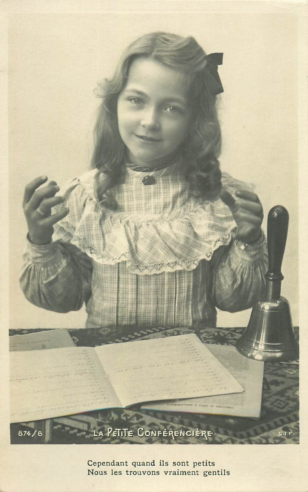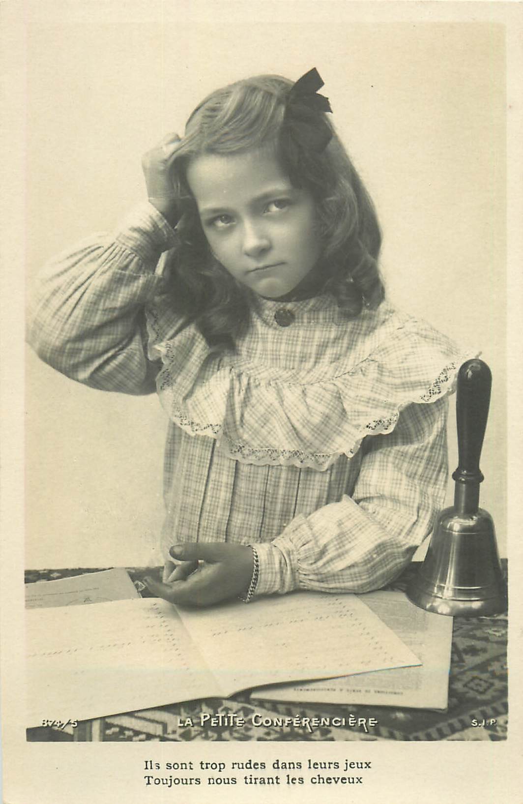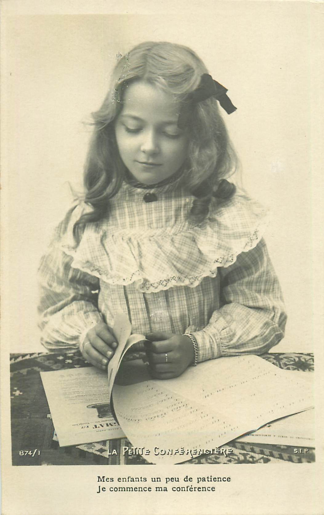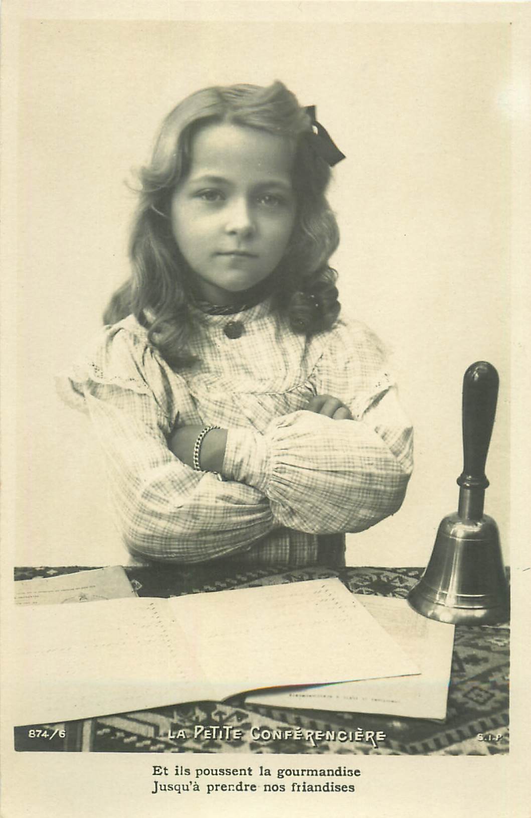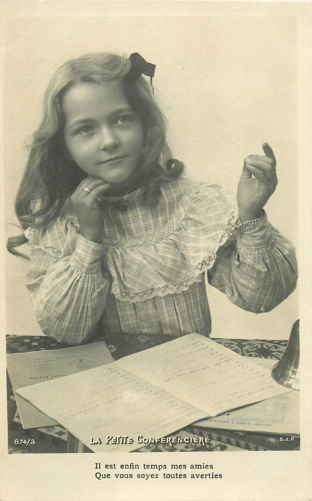 Série de 6 cartes vers 1900 " LA PETITE CONFERENCIERE "