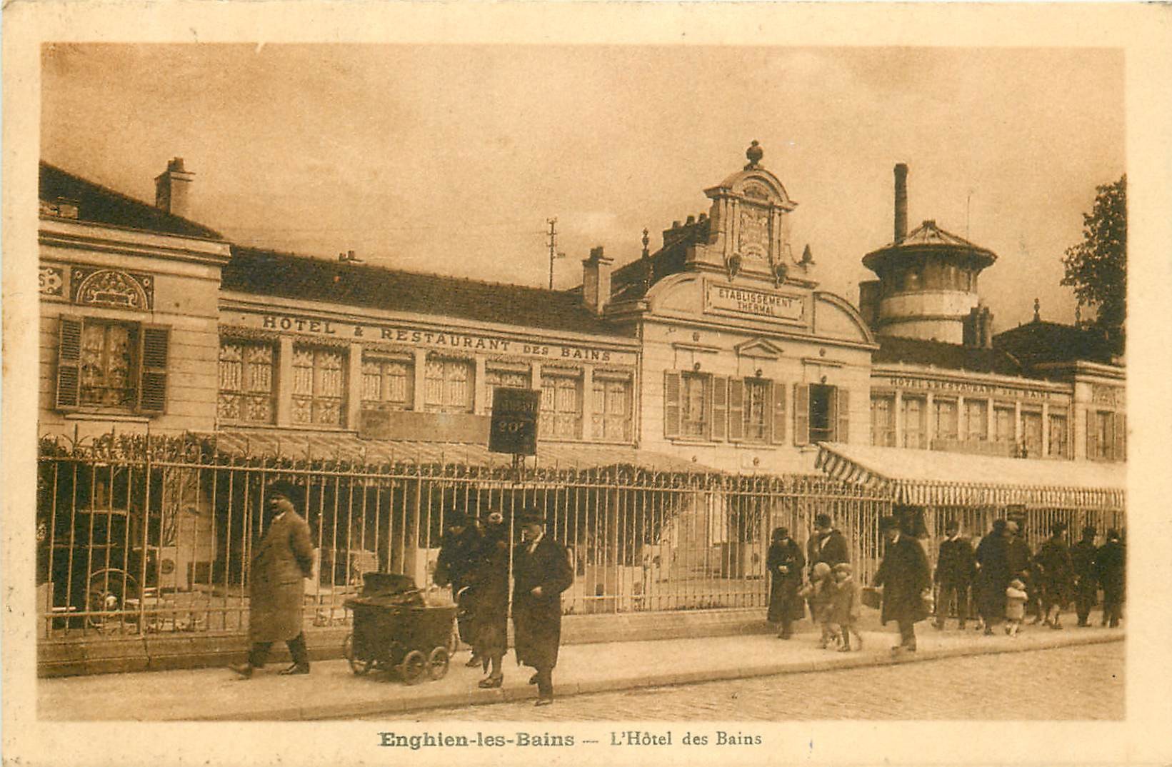 95 ENGHIEN-LES-BAINS. Femme avec ancienne poussette devant le Restaurant Hôtel des Bains