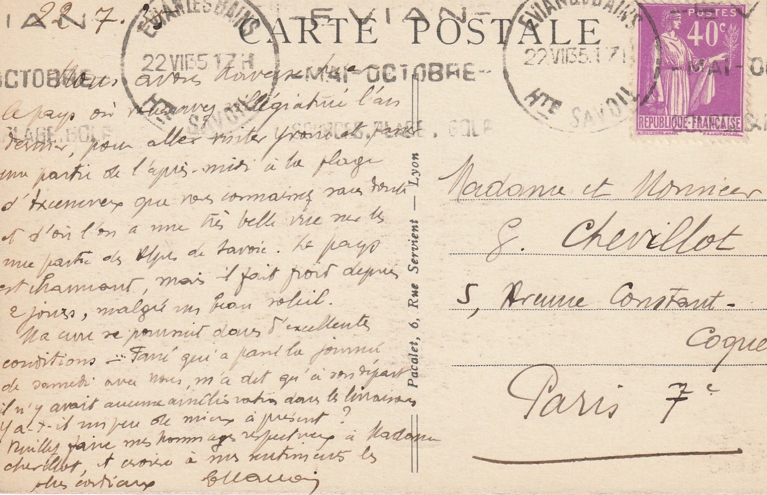 carte postale ancienne 74 LA DRANSE 1939 vers Evian4,90 €