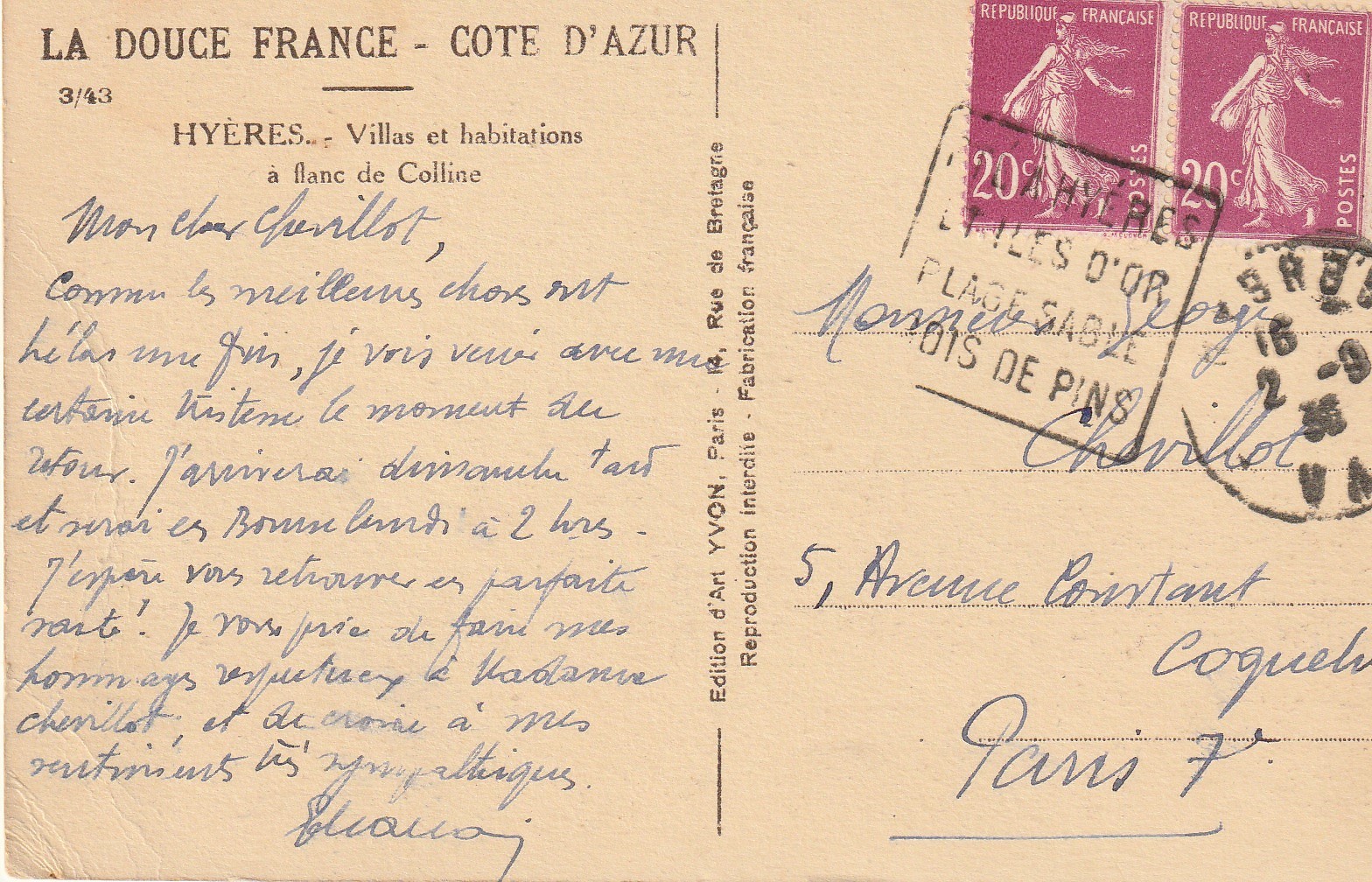 83 HYERES. Villas et habitations à flanc de Colline 1936