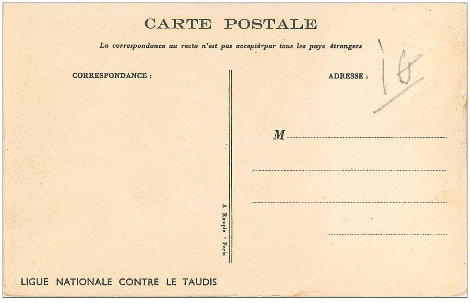 carte postale ancienne POULBOT. Ligue contre le Taudis. Il pleut à ma place.... Bon état. Les cartes vendues sur la boutique sont des originales.Destinataire :