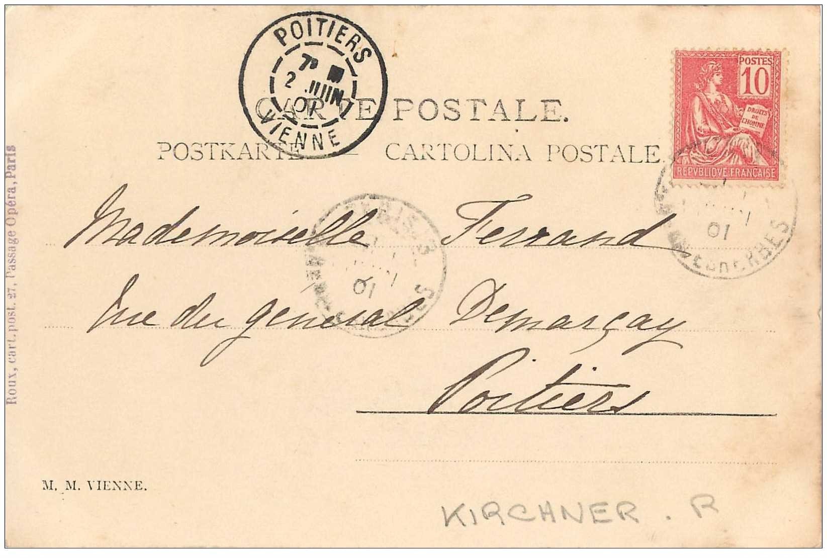 carte postale ancienne RAPHAEL KIRCHNER. Elégante sur un Oeuf avec Agneaux. Collection M.M Vienne 1901. Bon état. Les cartes vendues sur la boutique sont des originales.Destinataire :