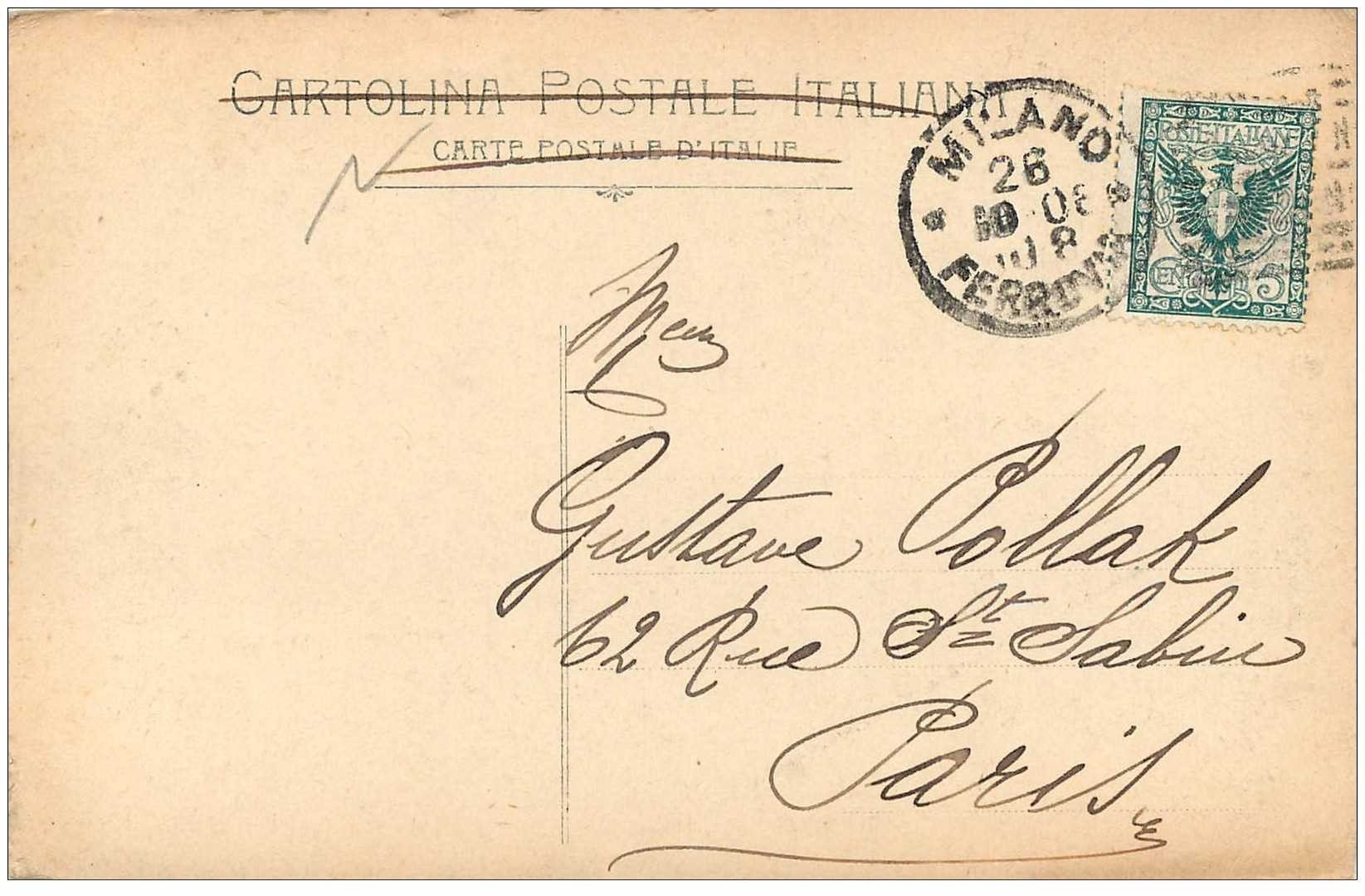 carte postale ancienne ITALIA. Milano. stazione Centrale 1908