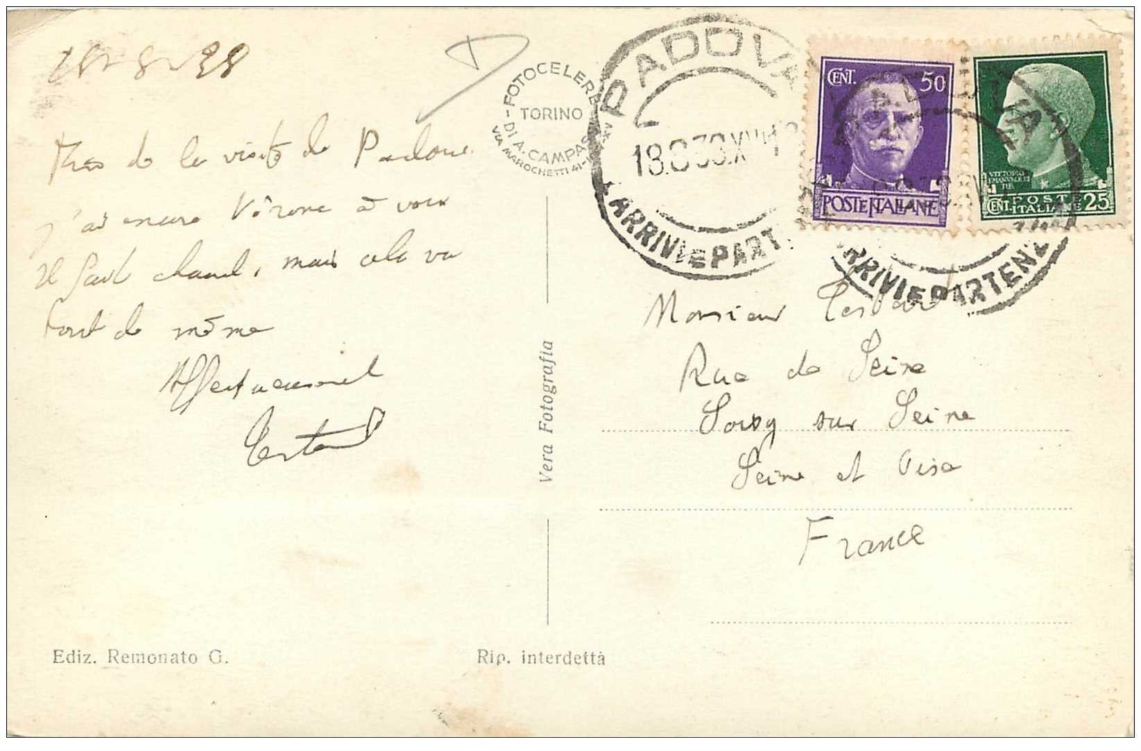 carte postale ancienne ITALIA. Padova. Basilica di San Antonio 1938 Photo Cpa à découvrir sur la boutique fortunapost.com. Bon état. Les cartes postales anciennes présentes sur ce site sont des originalesDestinataire :