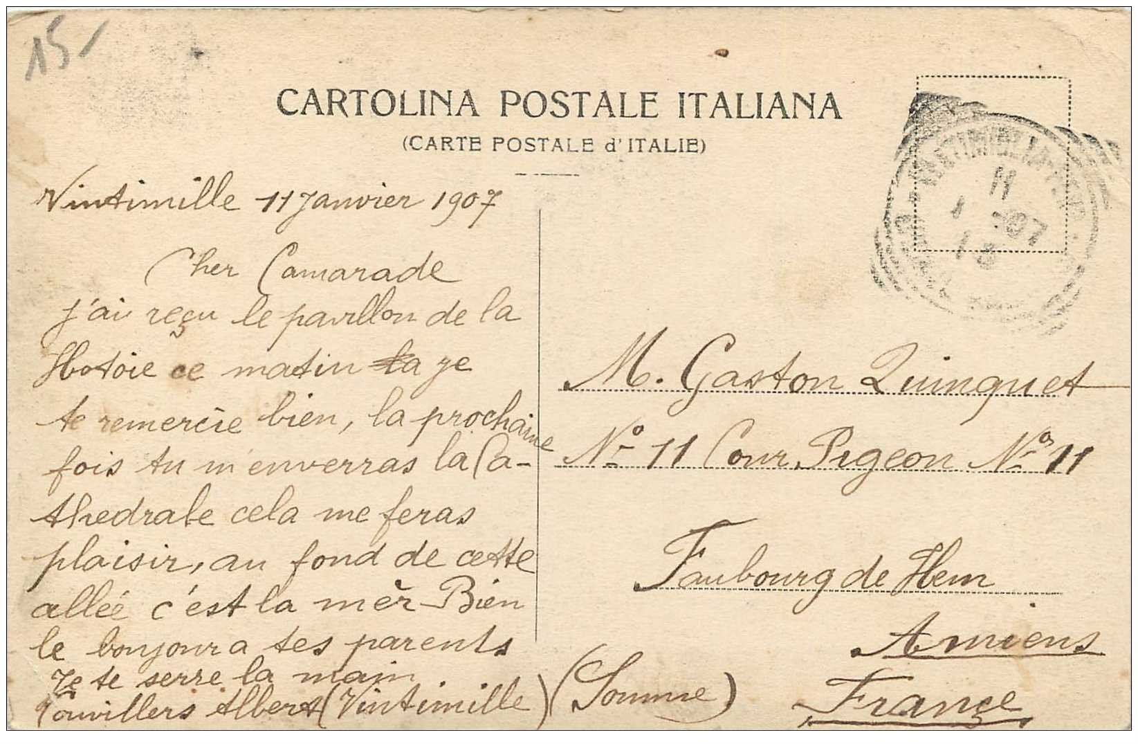 carte postale ancienne ITALIA. Ventimiglia. La passeggiata delle palme al mare 1907 à découvrir sur la boutique fortunapost.com. Bon état. Les cartes postales anciennes présentes sur ce site sont des originalesDestinataire :