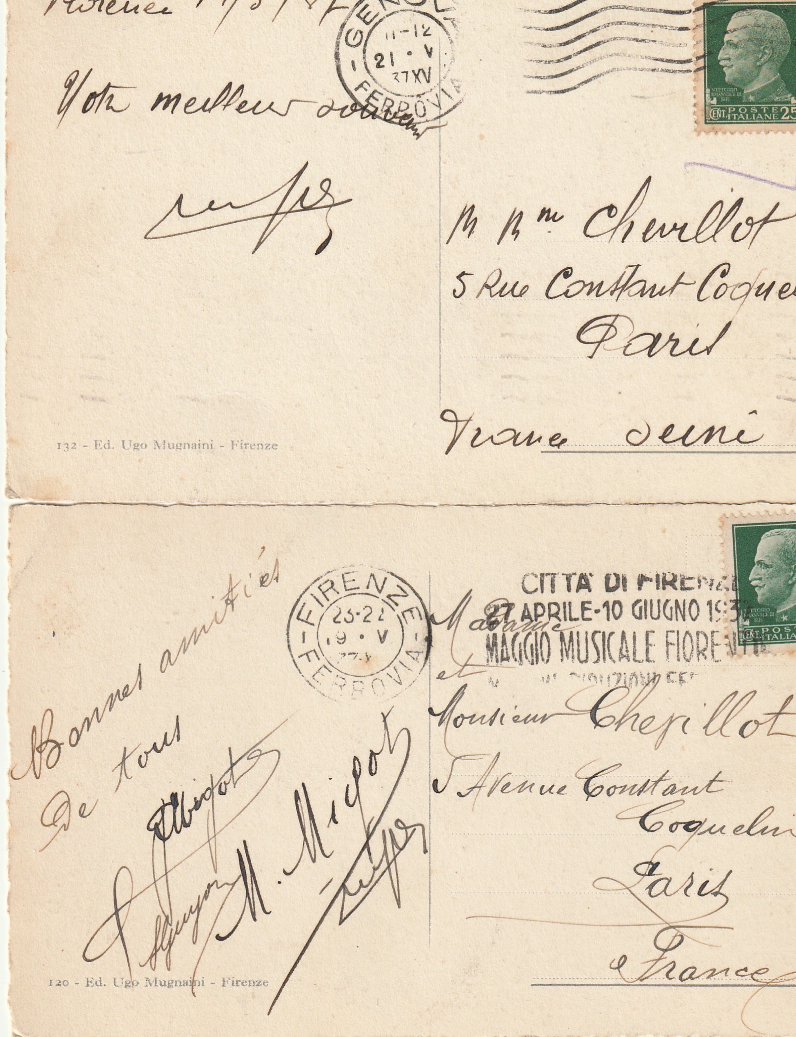 2 x cpa FIRENZE. Ponte Vecchio et Chiostro Museo de San Marco 1927