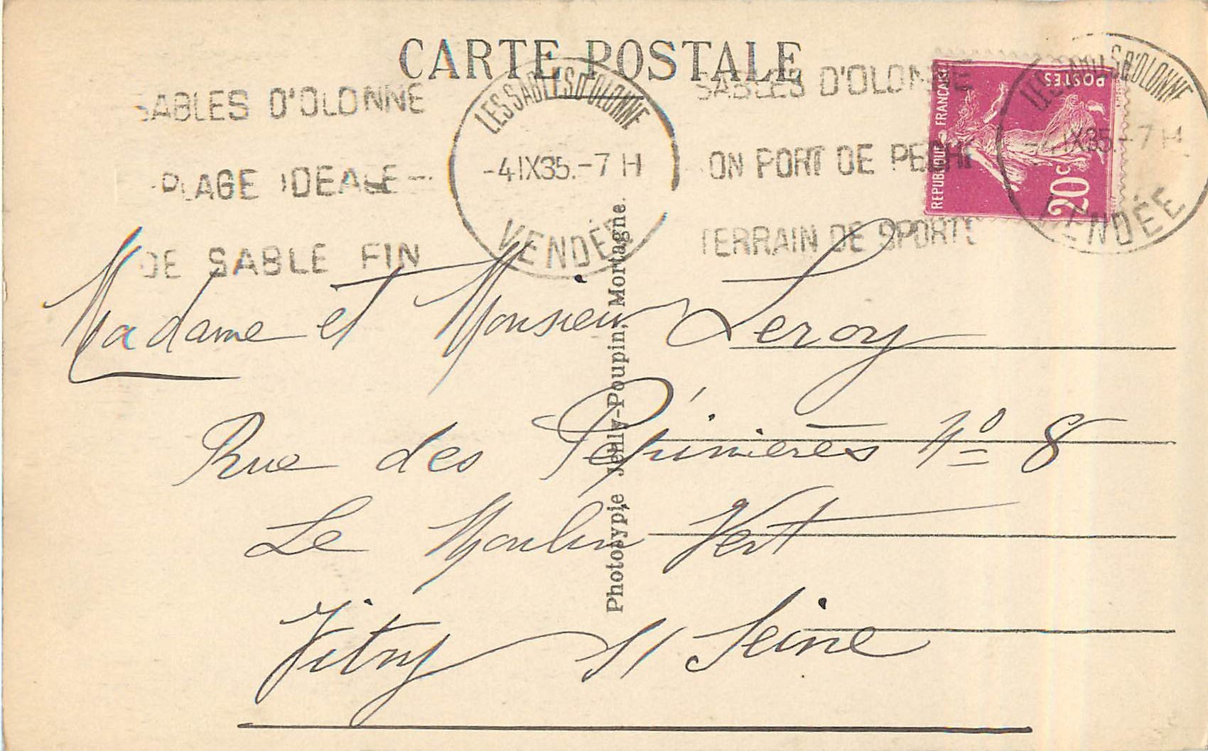 85 LES SABLES D'OLONNE. Costumes de Pêcheur et ramasseuse d'Huîtres 1935
