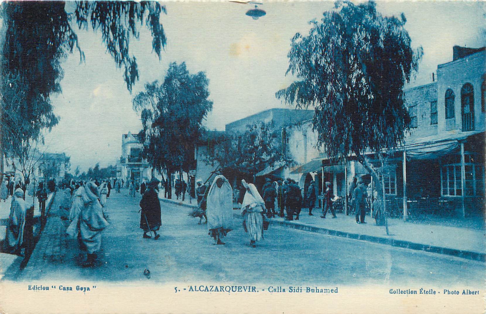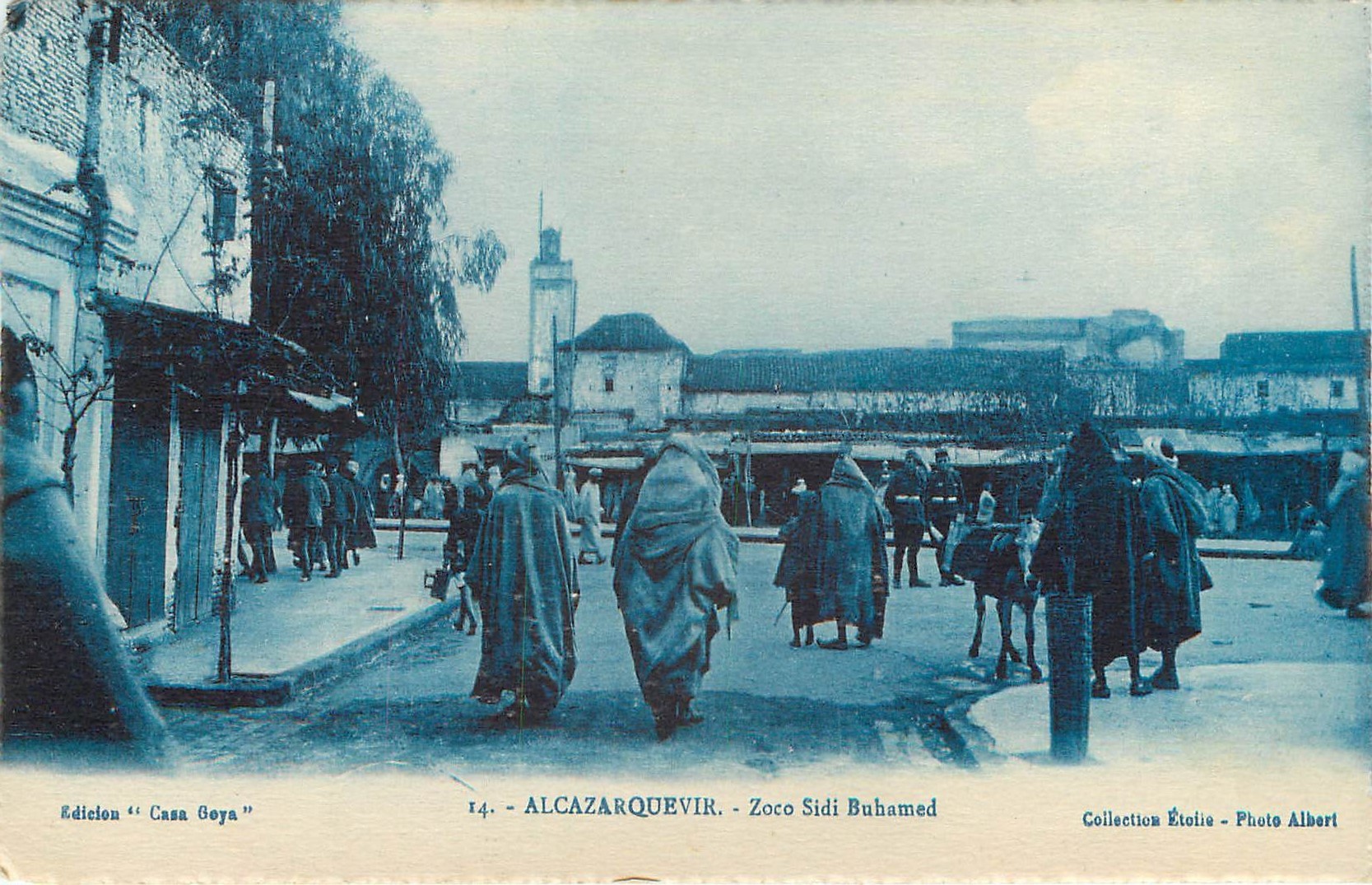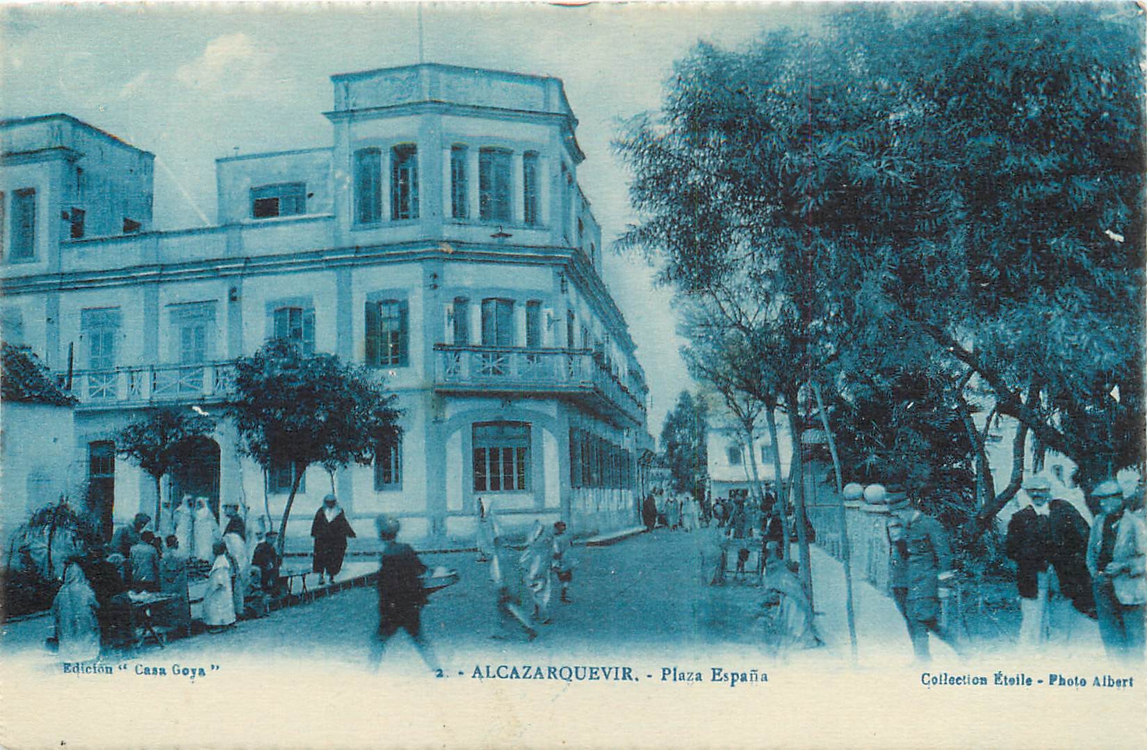 Maroc 4 x cpa ALCAZARQUEVIR. Place Espana, Calla Sidi Buhamed, Zoco Buhamed & de Afuera