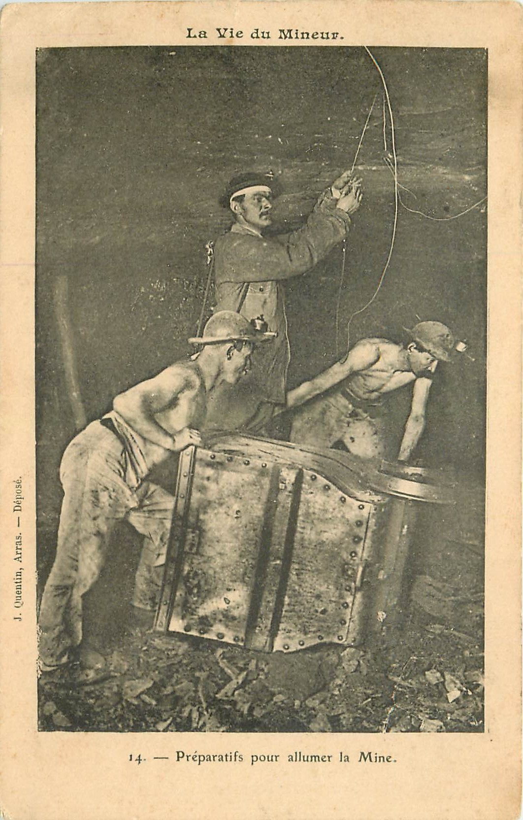 MINE MINEURS AU PAYS NOIR. Préparatifs pour allumer la Mine 1906