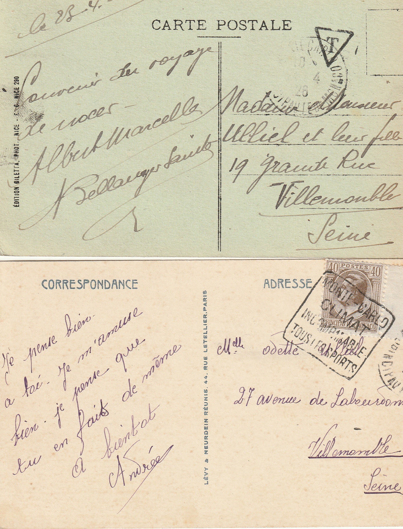 2 x cpa MONTE-CARLO. Théâtre et les Terrasses ainsi que l'effet de Mer 1926.28