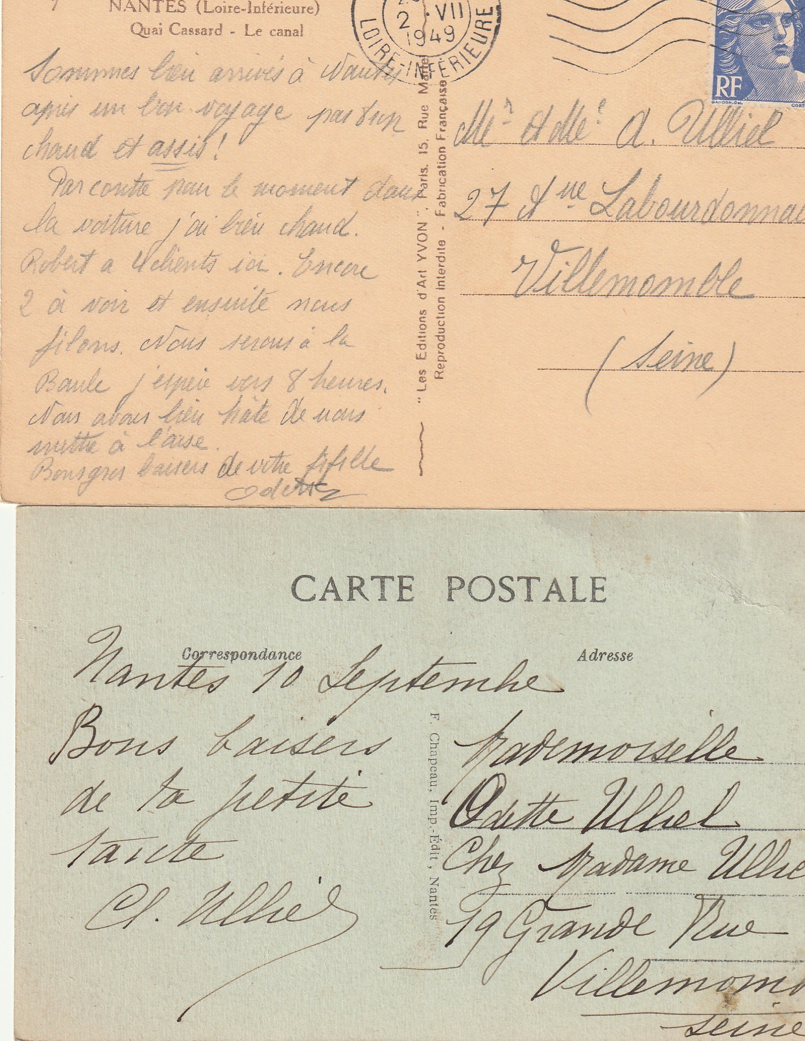 2 x cpa 44 NANTES. Canal Quai Cassard 1949 et Porte Saint-Pierre 1920
