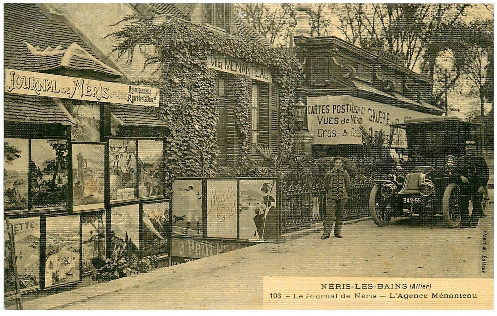 03 NERIS-LES-BAINS. Journal de Néris et Galerie Cartes Postales. Chauffeur de Tacot Agence Ménanteau