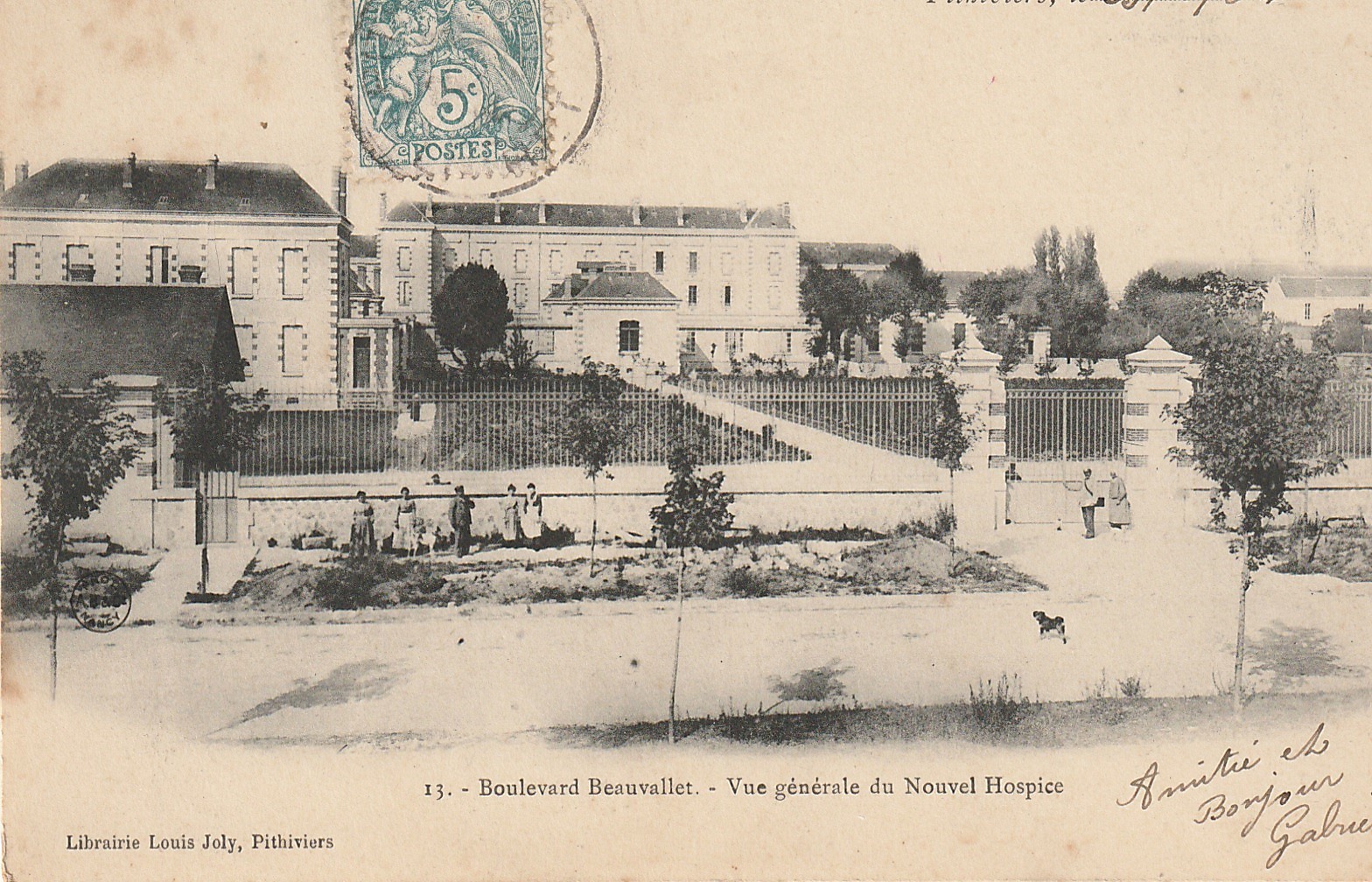 45 PITHIVIERS. Facteur à la grille du Nouvel Hospice boulevard Beauvallet 1904