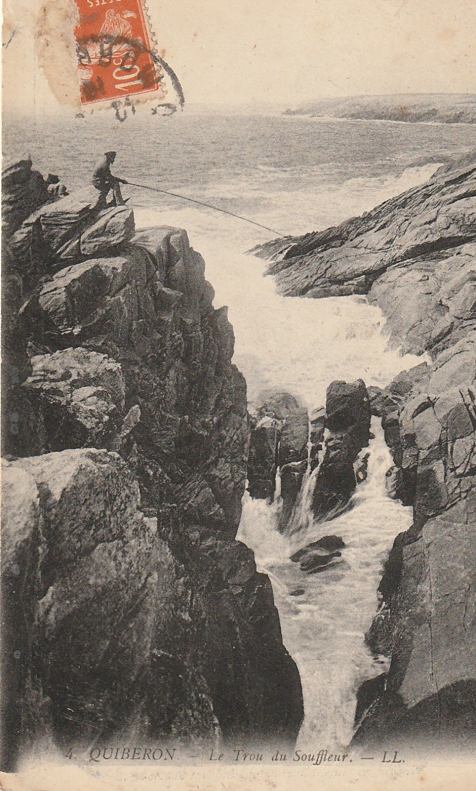 56 QUIBERON. Le Trou du Souffleur avec Pêcheur à la ligne 1916