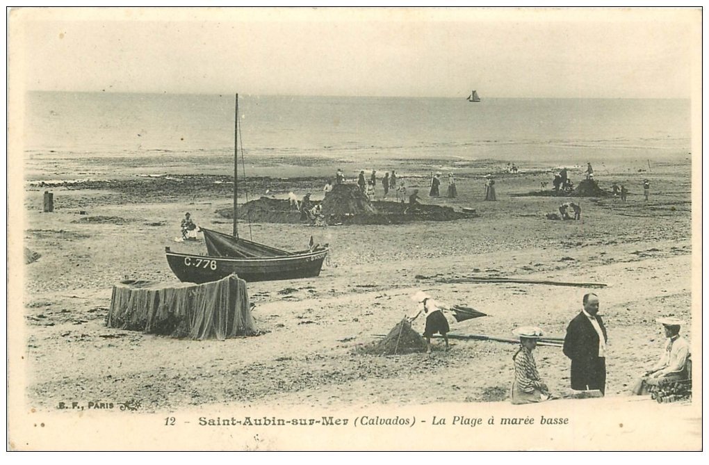 carte postale ancienne 14 SAINT-AUBIN. La Plage 1908 à marée basse