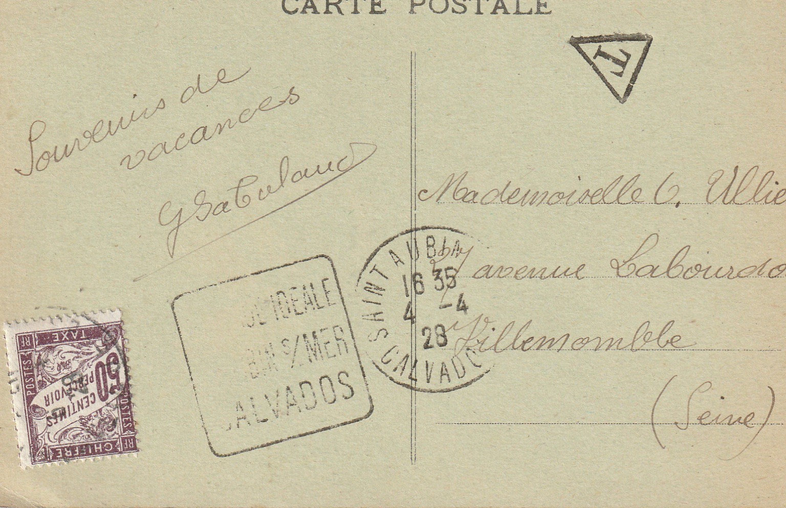 carte postale ancienne 14 SAINT-AUBIN. Les Cabines 1911 et le Bain. Pli coin1,90 €