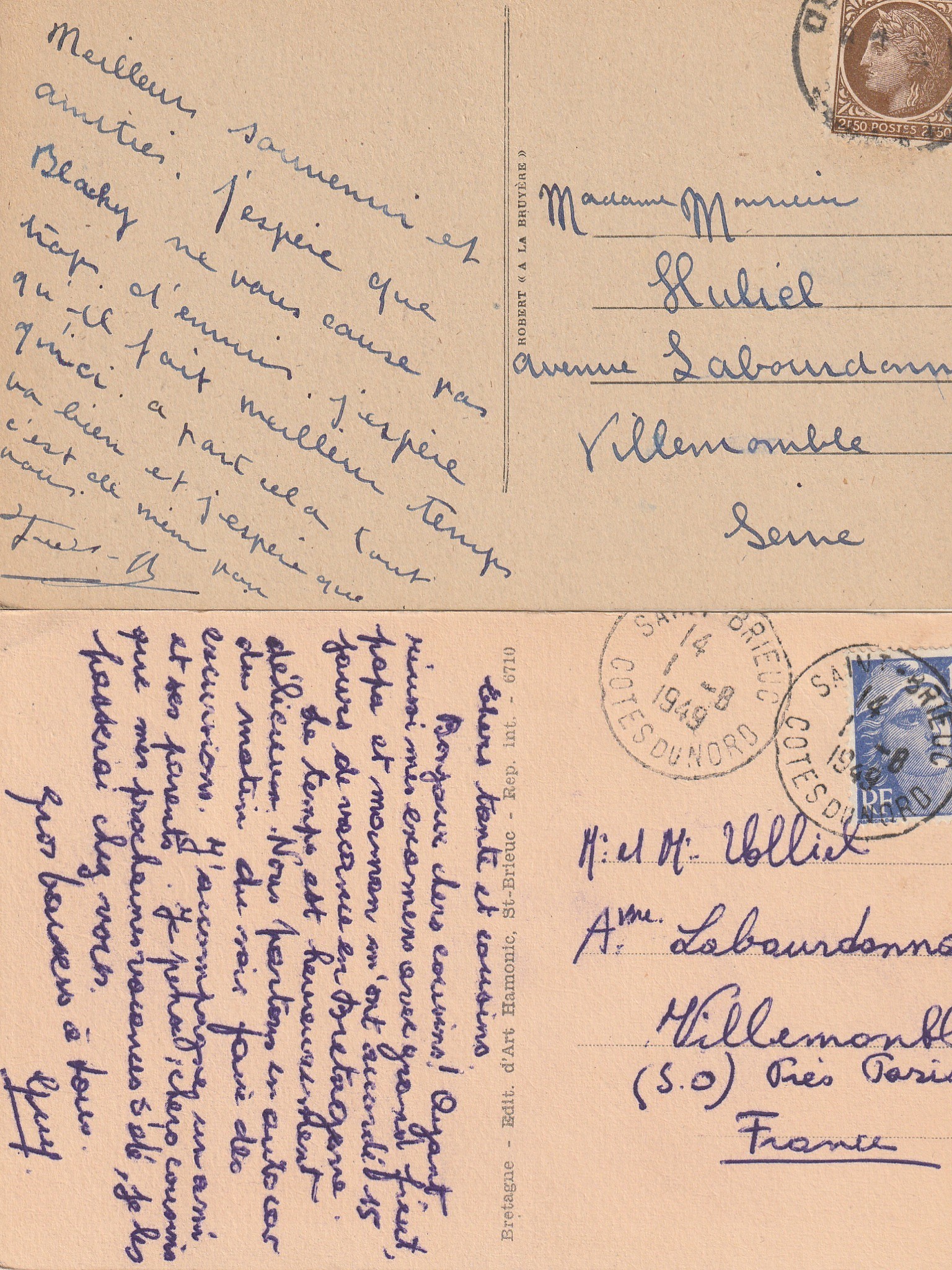 2 Cpa 22 SAINT-BRIEUC. Pont Toupin sur Vallée du Gouëdic et la Ville 1949