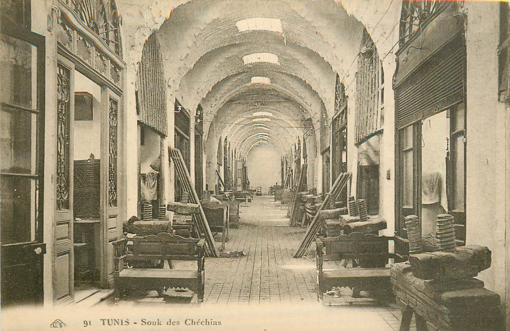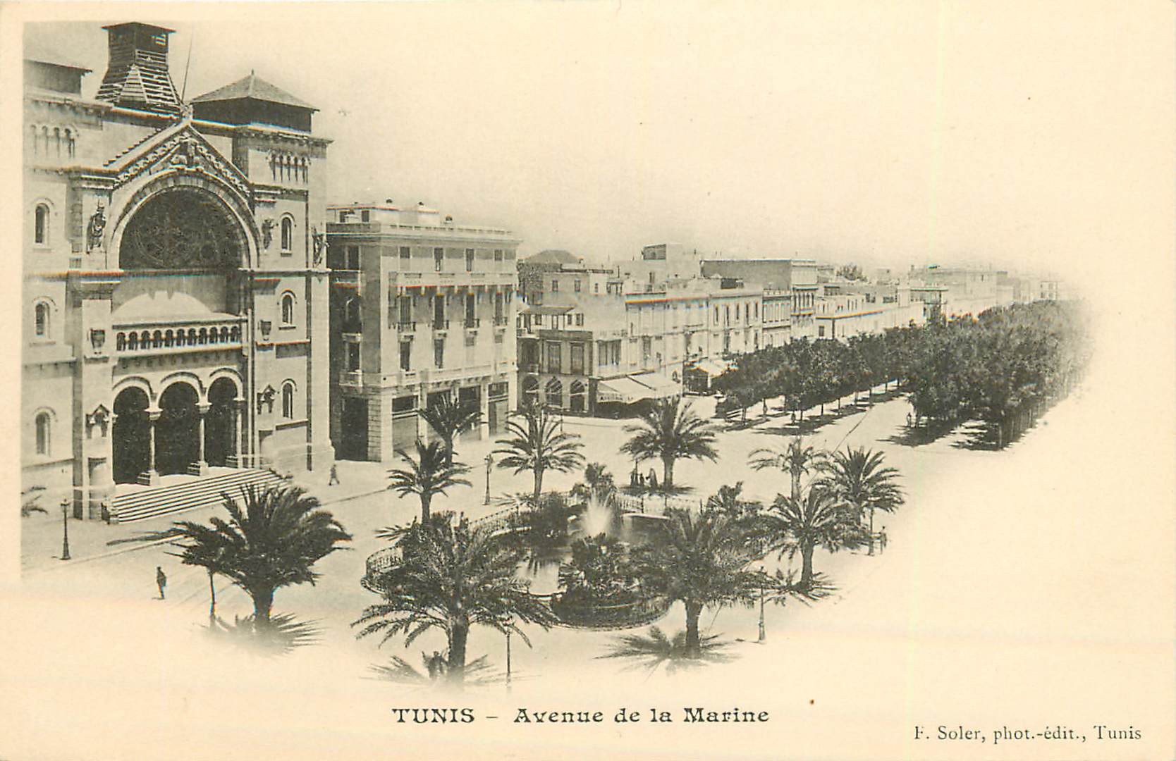 10 cpa TUNIS. Avenue Carthage, Souk Chéchias, rue El-Halfaouïne, Av Marine, Aqueduc Bardo, Salle Trône, Collège Sadiki..