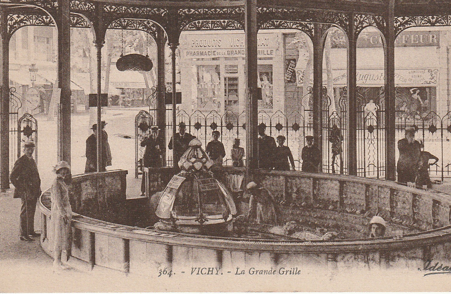 2 x cpa 03 VICHY. Une galerie couverte sur le Parc 1918 et la Grande Grille 1923