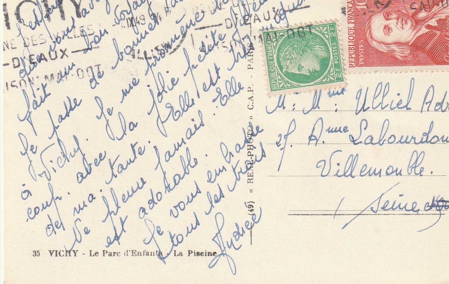 Photo Cpsm petit format 03 VICHY. Parc d'Enfants et Piscine bien animés 1949