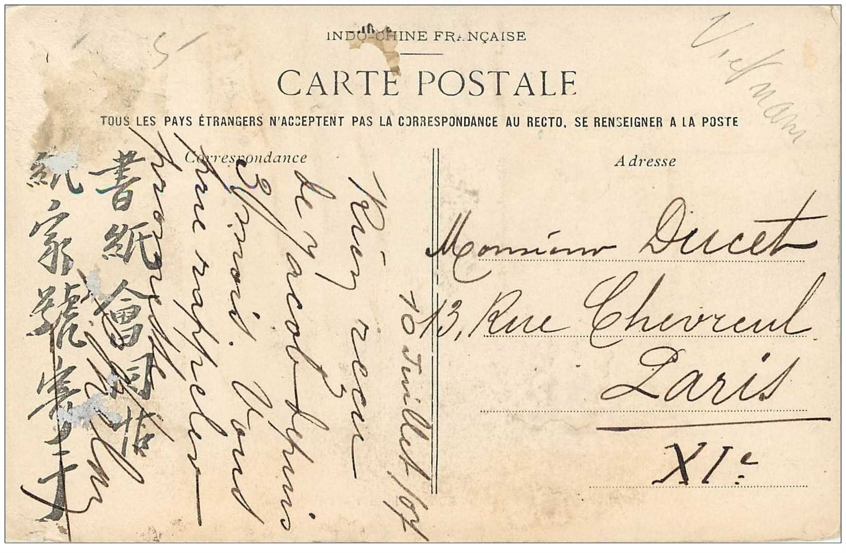 carte postale ancienne VIET-NAM. Cochinchine. Rade de Caugiou 1904. Timbre manquant...5,00 €